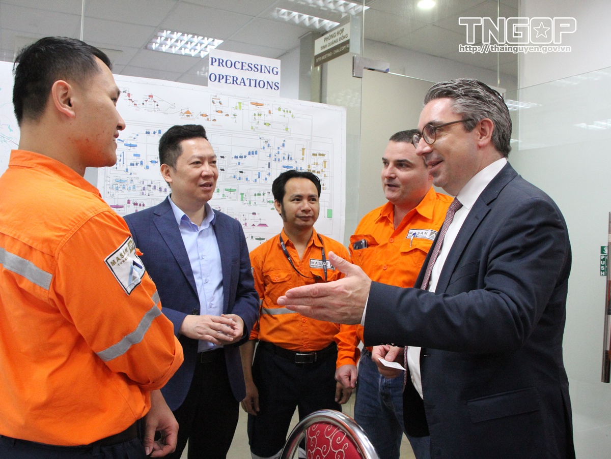 Sau chương trình làm việc, Đoàn đã tham quan thực địa mỏ Núi Pháo và nhà máy chế biến vonfram. Quốc vụ khanh Stefan Rouenhoff và các thành viên trong Đoàn đánh giá cao quy trình công nghệ hiện đại của MHT, mô hình vận hành tích hợp từ khai thác tại mỏ đến chế biến sâu vonfram, cùng đội ngũ kỹ sư và quản lý phần lớn là người Việt Nam. Đoàn cũng ghi nhận nỗ lực của Công ty trong ứng dụng công nghệ tiên tiến và thực hành khai khoáng bền vững.