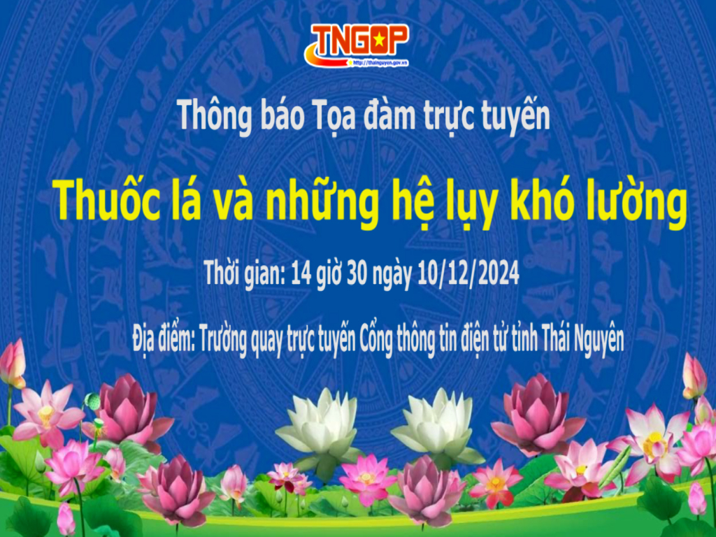 Vào lúc 14 giờ 30 phút ngày 10/12, Trung tâm Thông tin tỉnh Thái Nguyên tổ chức Chương trình Tọa đàm trực tuyến trên Cổng Thông tin điện tử tỉnh với chủ đề: Thuốc lá và những hệ lụy khó lường.