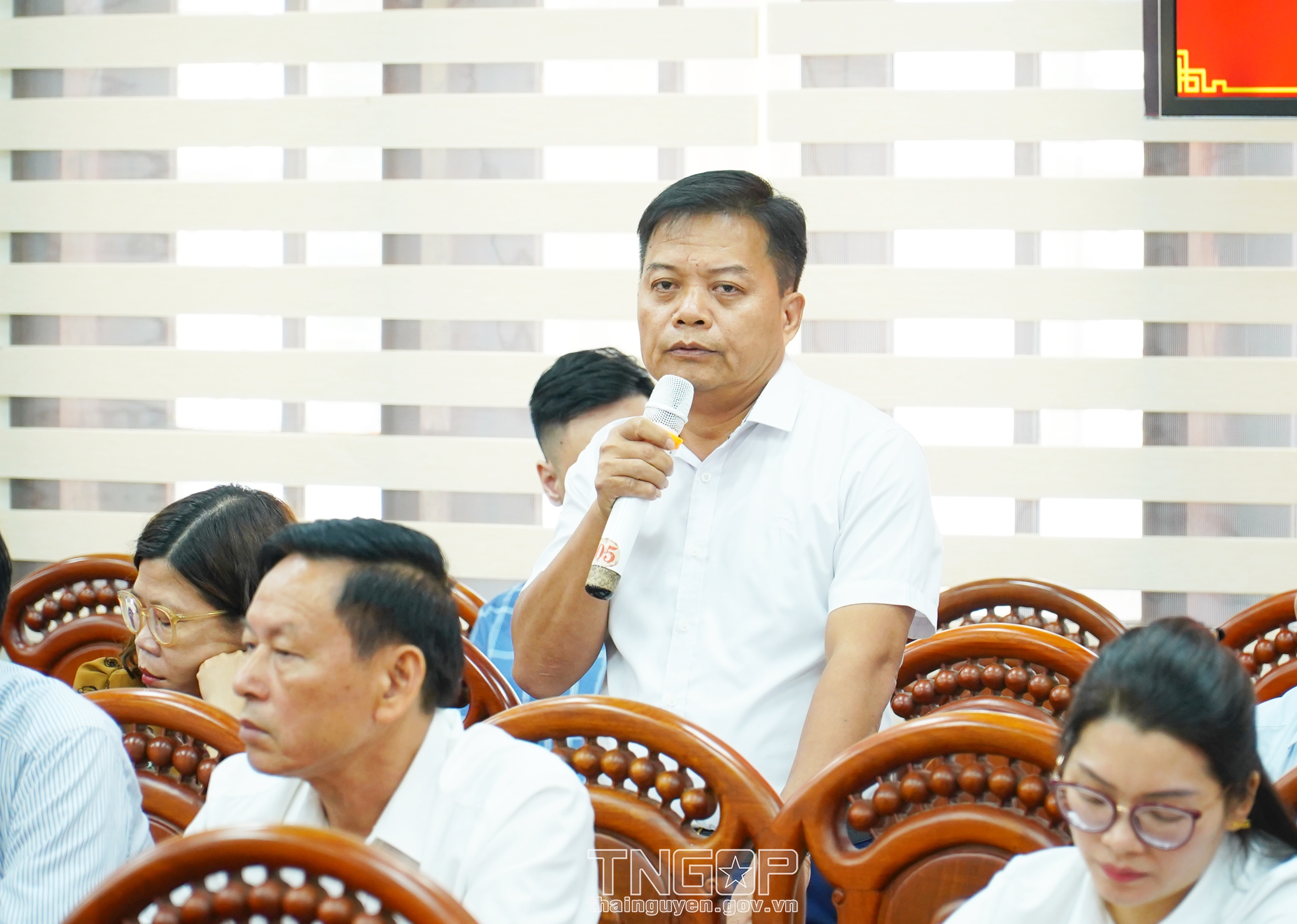 Ông Ngô Thượng Trung, Giám đốc Công ty TNHH Lâm Khải phát biểu tại Hội nghị đối thoại với các đồng chí lãnh đạo TP. Thái Nguyên về các thủ tục pháp lý của doanh nghiệp
