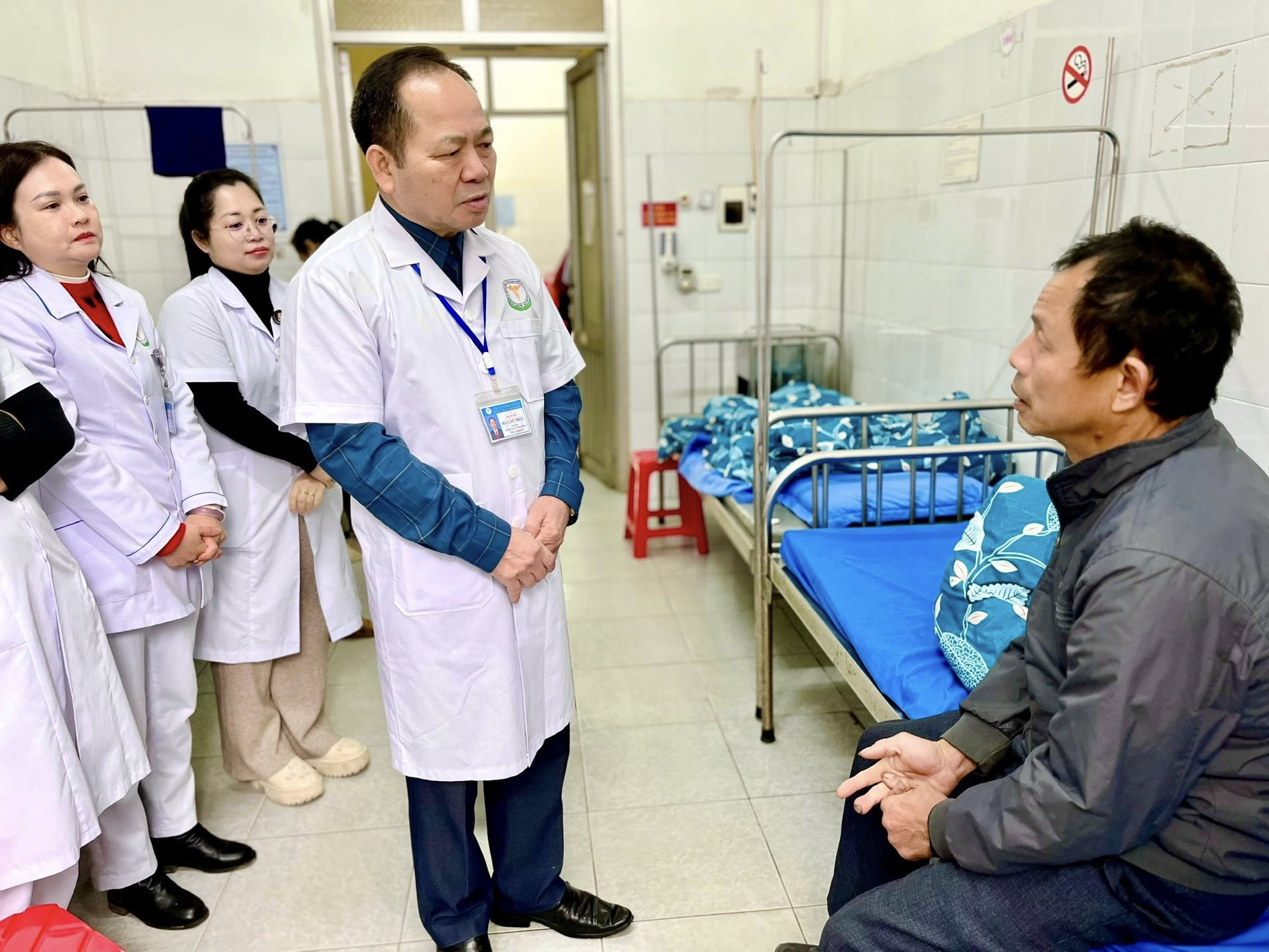 Các y bác sĩ tại Bệnh viện Phùng Chí Kiên (Trung tâm Y tế Bắc Kạn cũ) thăm hỏi sức khỏe người bệnh