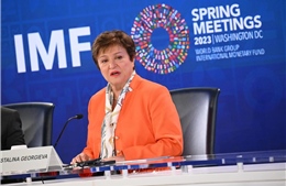 Tổng Giám đốc Quỹ Tiền tệ quốc tế (IMF) Kristalina Georgieva trong cuộc họp báo kết thúc tại Hội nghị Mùa Xuân IMF và Ngân hàng Thế giới tại Washington DC., ngày 13/4/2023. Ảnh tư liệu: AFP/TTXVN